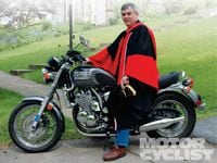 "It's funny how life circles around. I sold the Honda in '85 and 20 years passed before I returned to my roots. By '05 I was a professor at Penn State University. Central Pennsylvania has to be one of the best riding regions in the USA. Head off in any direction and within minutes you are into a biker's nirvana of twisty back roads and mountains. Kissell Motorsports in State College set me up with the T-Bird in the picture. The photo was taken in June at university convocation time. My wife refused to take the action shot I wanted, saying the academic robes would catch in the chain!"