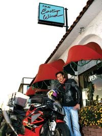 "My 9-5 day job is delivering documents that need filing in courthouses. Friday, Saturday and Sunday nights I deliver food for the Thai East Wind restaurant in Marina del Rey. I use my RC51 for both! I had it brand-new in 2003 and bought it because it's a championship-winning bike; I love racing and racing bikes. I also figured I could earn money with it and have fun on it.