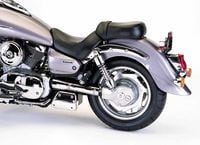 The new single-backbone steel frame is 100mm narrower than last year's skeleton, making room for a more graceful 5.3-gallon fuel tank. And because the stretched and slammed look is in, the 1600's fenders, seat and side cover are lower. Wheelbase is approximately 20mm longer than the 1500's; part of that extra length comes from a swingarm that's 30mm longer. Working with shocks mounted closer to vertical, the new swingarm is part of Kawasaki's plan to give the 1600 a smoother ride and more accurate handling. The rest comes from a 43mm fork in place of the previous 41mm unit, and tubeless tires mounted on new cast wheels. Dual front discs and a larger rear brake rotor should improve the 1600's performance envelope when it's time to slow down.