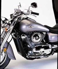 Looking a little closer reveals a list of detail improvements. Vulcan connoisseurs will note new square master cylinders for the clutch and front brake. Unlike some other Japanese factories who should know better, Kawasaki forms the Vulcan 1600 headlight and fork covers from chrome-plated steel, not plastic. Floorboards are reshaped, grips do without tacky faux-chrome plastic end caps, and engine oil lines are tastefully veiled behind the rocker-box cover. A thinner tank-mounted instrument panel--complete with new LCD fuel gauge--gives the cockpit a cleaner, more finished look.