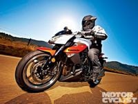 Okay, so it can't match Kawasaki's original '73 Z1 for pure game-changing, mind-blowing impact. The Z1000 has other ways of getting your attention. Pry your eyeballs away from the SyFy-channel styling long enough and you'll see this is no dumbed-down naked compromise. From that all-new 1043cc inline-four to the equally new aluminum-spar skeleton, everything about it transcends standard equipment. Optimal adrenal stimulation comes online well below the five-figure revs and triple-digit speeds where razor-sharp supersports do business. Armed with compliant suspension, admirably powerful brakes and humane rider accommodations, Kawasaki's maximum minimalist gets down to the business of pleasure much closer to legal speeds. Beyond that, one trip past 7000 rpm will make you forget all about the original Z. Broad bars, quick steering and a broader spread of power make it equally adept at everything from Sunday-morning scrapes to urbane jungle warfare. Nice.
