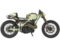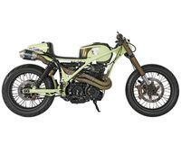 With its steel perimeter frame wrapping around a breadbox-style fuel tank, AFT Customs' green-on-green "Sentoh" is reminiscent of Honda's very first streetbike, the Model D, sold exclusively in Japan in the early 1950s. The inline-four engine comes from another iconic Honda model, the 1970 CB750, while Race Tech shocks, a Yamaha R1 fork and Beringer brakes grant modern cafe-racing credibility.