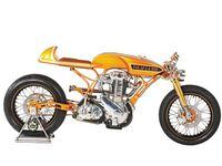 From the unlikely combination of a 1951 BSA Gold Star single and a pair of 17-inch Talon supermoto wheels, British builder Larry Houghton of Lamb Engineering created the stunning "Son of a Gun." The delicate framework is recycled bits of scrap steel, and the bodywork is inspired by '60s-era Honda GP bikes. Don't let the gold metalflake paint fool you-Houghton has less than $10K invested in the entire build.