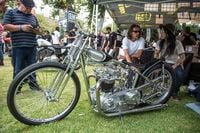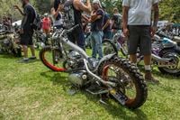 After perusing the field of imaginative two-wheeled (and three-wheeled) designs, spectators can purchase parts at the AMCA regional swap meet, or from vendors such as Chopper Dave, Pangea Speed, Vance & Hines, and many others to kickstart their own custom build. Plenty of moto-themed goods can be purchased, from helmets to leathers to boots, bags, and jewelry. And if by chance you get overwhelmed with choppers, bobbers, diggers and lowriders, the people watching is worth the $10 admission all in itself.