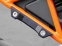 To complement the tidier tail I also bolted on a set of MNNTHBX’s “passenger peg deletes” for $47. These plates are machined from aluminum and recessed so they slip over the bolt bosses that are exposed when you remove the passenger pegs. My wife isn’t one to cling to the back of a sportbike (especially one as small as the RC) so I’m not concerned with losing the ability to carry a passenger, and the benefit to the KTM’s appearance is substantial. Just look at how clean that backside is.