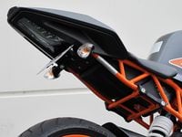 MNNTHBX ( mnnthbx.com. It's short for "man in the box") was the first company that popped up when I started Googling undertail kits. These guys specialize in small bikes like Honda's Ruckus and Grom, and the KTM RC390 and Duke 390 are right up their alley. MNNTHBX's fender eliminator kit is just $89 and allows you to hack off that massive appendage hanging from the RC's backside. It's a simple kit that's really easy to install. Reusing the stock turn signals meant there was no need to solder or splice wires, and while there's no separate license plate light, the stock LED taillight casts plenty of illumination onto the plate. Nifty LED bolt lights are available if you want proper illumination, but I'm happy with this setup. Total install time was about 15 minutes, and the bike looks so much better now.
