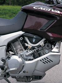 Tight bends urge you to crank open the Navigator's precise, light-action throttle and take full advantage of the extra midrange power and torque delivered by Cagiva's remapping of the Suzuki engine's stock EFI. Midrange grunt peaks at a nice 75 foot-pounds of torque and allows you to accelerate cleanly from 2500 rpm in top gear.