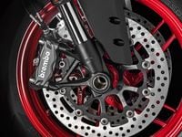 Other changes for 2016 include a wider, more aerodynamic nose with larger air intakes, revised side louvers, new mirrors, and grippier machined-aluminum footpegs. The new engine is EURO 4 compliant, making it the first Superquadro engine to receive certification. Hardware required to meet EURO 4’s stricter noise- and tailpipe-emissions standards may help explain the 959’s claimed dry weight, which is listed as 388 pounds, up 16 pounds compared to the 899.