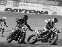 While much of American Flat Track's limelight is trained on the renewed factory rivalry between Harley-Davidson and Indian, 12 of the 18 machines that lined up for the opening AFT Twins main event in Daytona were powered by Kawasaki's parallel-twin Ninja 650—the privateer engine of choice. Among them was Henry Wiles' unique machine (No. 17), which mimicked the single-cylinder motocrossers that are no longer campaigned in the premier class and which required a different riding style than the more traditional Harley V-twin of Jake Johnson (No. 5). Wiles finished third.
