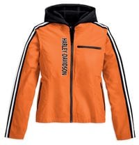 Make a bold, feminine statement with the new Colorblocked Functional Jacket (P/N 97248-10VW, $175) for women from the Harley-Davidson(r) MotorClothes(r) Spring 2010 line. Built from water-resistant nylon and loaded with embroidered and printed graphics, this stylish jacket features pre-curved sleeves, zippered cuffs and adjustable buckle waist tabs for flattering looks. Four zippered air vents deliver customized cooling, four zippered pockets provide usable storage, and accessory FXRG(r) body armor can be added at the elbows and shoulder pockets. Available in XS-3W sizes.