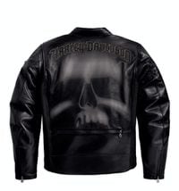 The new men's Rushmore Leather Jacket (P/N 97188-10VM, $450) from the Harley-Davidson(r) MotorClothes(r) Spring 2010 line delivers classic looks, high-quality features and a unique skull graphic printed on the back. Constructed from midweight leather with a poly-mesh lining, the jacket offers pre-curved sleeves and power-stretch panels for riding comfort. Zippered vents allow custom airflow control, while pockets at the elbows and shoulders accept FXRG(r) accessory body armor. Seven additional pockets provide extra storage capacity, and 3M(r) Scotchlite(r) Reflective Material adds extra visibility. Available in S-5XL and Tall sizes.