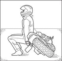 Make sure you feel good about the footing. Motorcycles are heavy, and the only thing worse than a tip-over is lifting the bike halfway up and dropping it again. Keep in mind you’ll be pushing toward the bike as well as lifting.