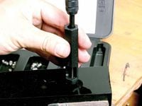 Use the supplied drill bit to enlarge and clean up the hole you're attempting to rethread (6). Take the supplied tap and cut new threads into the enlarged hole, again taking your time and using grease on the tap to catch the metal chips (7). Place the insert in the supplied tool with the threading mandrel pulled back and the stop pin facing the tapered end of the tool (8). Turn the mandrel until the insert is just at the end of the tool, and then place it against the hole you've just drilled and tapped. Continue turning the mandrel until the HeliCoil is inside the threaded hole (9) and flush with the surface. Retract the mandrel and use the supplied pin to knock the installation tang from the insert. Retrieve the pin and you're set. You'll be more careful with those threads next time.