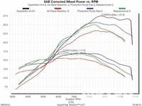 It's hard to believe all those traces are from the same motor. This graph shows our CBR250R racebike project in its various states of development, from stock (red lines), to hopped-up with Leo Vince exhaust, K&N; air filter and Bazzaz Z-Fi fuel module (green), to the "Production" and "Superbike" setups we have now. The blue traces show the engine's output when the bike conforms to 250 Production class rules, with the airbox in place and pump gas running through the injector. The black line towering above everything else is with the airbox removed, a velocity stack installed, and VP T4 fuel ($12.79 per gallon; www.vpracingfuels.com) in the tank, as is permissible in the 250 Superbike class. The T4 is a more affordable high-octane alternative to VP's U4.4 race gas that provides the detonation protection needed to safely increase compression and advance the ignition timing.