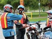 Instruction begins with a brief classroom session followed by a spin around the parking lot before heading out onto the street. Each student gets a radio equipped with a helmet earpiece. The coach always leads, narrating what’s going on and pointing out potential dangers such as a car backing out of a driveway and telltale signs of children at play such as bicycles strewn across a lawn. The goal is to identify, evaluate and adapt your riding to potential hazards before they become big problems. Recognizing a potential hazard is just as important as knowing how to avoid it.