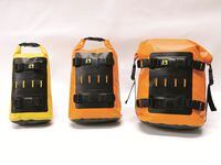 Got cargo? Maybe you need a Rolie. Wolfman's new Rolie Bag System consists of waterproof luggage with welded seams and roll-top closures that not only seal out water, but banish dust and sand too. Rolie Bags are built from the same tough, reinforced vinyl Wolfman uses in its Expedition Series, but the Rolie allows you to mix and match the bags to suit your needs. With three bag sizes and a multitude of mounting options, you can choose what you need and how to carry it. Rolie Bags can be used as tank bags, or tank panniers, or as rack bags, saddle bags or seat bags. Same bag, multiple functions. Get the Made-in-the-U.S.A. Rolies in black, yellow or orange.