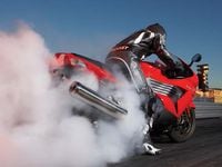 Starting with the 1198cc ZX-12R mill, Kawasaki engineers increased bore as well as stroke to 84mm x 61mm to get the extra displacement, but claim to have maintained virtually the same engine width. Requisite combustibles come from four 44mm throttle bodies--2mm smaller than what you'd find in a ZX-12R. Compression is set at 12.7:1. Although bikes have yet to enter production, the factory estimates its strongest streetbike yet will send 200 horsepower and 100 lb.-ft. of torque to a 6-speed gearbox. At that rate you could be looking at the first off-the-rack sportbike to put 180 horses to the pavement.