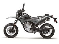 The 2025 Kawasaki KLX300SM is available in Battle Gray and Phantom Blue for $5849.