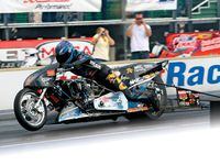 Hogan races wearing a respirator (to protect him from noxious nitro fumes), and describes a launch as "like being rear-ended by a semi." Sixty mph comes in just .7 of a second, the 200-mph mark passes in 4 seconds, and 250 mph-367 feet per second-passes in less than 6 seconds. The bike produces over 4 Gs of acceleration at launch (more than the Space Shuttle on take-off), and still pulls more than 1 G at 250 mph. The very definition of a wild ride.