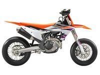 The orange, white, and black with purple accents 2024 KTM 450 SMR has a retail price of $11,999.