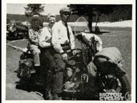 The blazing Blasius bunch. Charles Blasius, half of Blasius Brothers, H-D dealers, of Idaho Falls, Idaho, the Missus and son Wayne.
