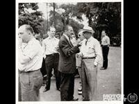 Sal Scirpo of Middletown, Connecticut, winner of the 1946 25-mile Novice road race championship, with his pit crew backing him up after victory. Photo by W.F. Webber
