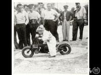 One of the minor satellites of the race, Teddy Edwards, Jr., of Atlanta, Georgia, on his Excelsior Welbike, putting on a fine show between acts. Teddy was overheard to say, in the spirit of his sportsman father, “When do I get some competition?” Photos, Louise M. Scherbyn and Bush Photos