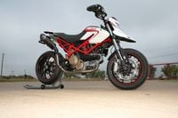 The Neimen Marcus Ducati Hypermotard features a Termignoni full exhaust system with performance ECU, Ducati Performance race seat, a specially designed "Tricolore" color and graphics package and an array of carbon fiber accessories - all conceived and executed by Advanced Motorsports, one of the premier Ducati dealerships in North America.