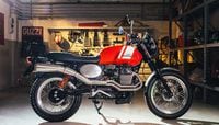 Take, for example, the Scrambler kit (pictured above), which includes 18 accessories designed to take your V7 II from run-of-the-mill to fun-up-a-hill. Obvious additions are the knobby tires, high exhaust, and off-road footpegs, with a handful of “satin finish” aluminum bits completing the look. We haven’t ridden the V7 II yet, but we’re guessing off-road results will vary.