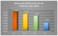 - Number of motorcycles stolen nationally in 2014: 42,856
