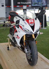 A total of 47 "Eslick Edition" 675R motorcycles will be offered; each one representing the 47 years between the 1967 and 2014 Daytona 200 wins. Each Eslick 675R includes a D.I.D. 520 chain conversion, Renthal grips, Attack Performance rearsets and custom paint. Triumph obtained approval from AMA Pro Racing to use the official series sponsor logos in the distinctive red and white graphics.