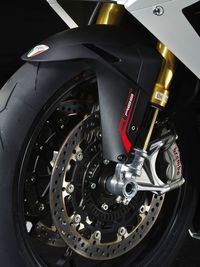 The compact, lightweight Bosch 9MPlus control unit at the heart of the ABS system contains pressure sensors that [interface with two phonic wheels (one for the front wheel, one for the rear). The main objective of this new ABS system is to reduce braking distances on wet, damp, or otherwise low-traction surfaces. The ABS system also prevents deceleration from causing the rear wheel to lose contact with the asphalt, thus impeding the motorcycle from tipping forward.