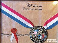 [AMA Hall of Fame dirt-track tuner Bill Werner had something special to show us at the Steel Shoe Fund endurance ice race: his 1976 _Motorcyclist _Magazine All Star Award, complete with commemorative jacket patch. Werner was recognized for winning that year’s AMA Grand National Championship—the first of three consecutive titles with rider Jay Springsteen—joining Kenny Roberts, Kel Carruthers, Malcolm Smith, Marty Smith and others in caricature. Roger DeCoster—then 500cc Motocross World Champion, now Red Bull KTM team manager—is the only 1976 All Star besides Werner who remains active in motorcycle competition.