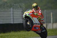 The sun was out for the second and final day of a test at Mugello for the two Ducati Team riders, allowing them both to [work hard the entire day, with just one break when the temperature was highest. Valentino Rossi and Nicky Hayden turned 76 and 81 laps, respectively, trying different configurations of the engine, electronics and chassis, among which was a new aluminum swingarm.