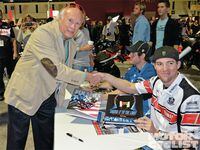 After admiring Ben Spies since early in his AMA Superbike days, Motorcyclist contributor Peter Starr had an opportunity to trade books with the MotoGP phenom during one of his International Motorcycle Show Press Day appearances. Spies' book is available from David Bull Publishing (www.bullpublishing.com) and Starr's book (with DVD) from www.motodvd.com. Turns out Spies' fellow MotoGP competitor Cal Crutchlow (signing autographs at Spies' right) was born in Coventry, England, the same town as Starr.