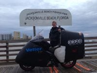 He started in Santa Monica, CA, then rode south to San Diego before heading east on Interstate 10. He carried four chargers that when plugged in simultaneously brought the Zero's recharge time down to about 45 minutes for an 80 percent charge, and an hour and 15 minutes for a full charge. He found 240-volt power primarily in KOA campgrounds along his route, and napped, ate, or showered while charging the Zero. Except for the repair stop to fix a loose sprocket bolt that eventually required replacing the Zero’s motor, when he wasn't charging he was riding.