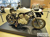 That bike was code-named Project Nova, and the final prototype is one of many never-before-seen concept vehicles featured in “Collection X: Weird, Wild Wonders of Harley-Davidson,” on display at the Milwaukee museum now. Designed in partnership with Porsche, the Nova was powered by a short-stroke, liquid-cooled, DOHC V4 rated at 135 horsepower. The chassis featured an underseat radiator and fuel tank, with a rim-mounted front brake that predated Buell’s ZTL design by more than a decade. It’s an innovative, compelling machine that almost certainly would have shifted customers’ perceptions of Harley-Davidson to an aggressive and daring brand. Unfortunately, parent company AMF killed the project early in ’81. It was deemed too risky and expensive, and funds were instead diverted to Evolution engine development.