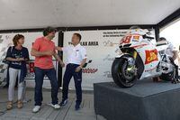 Shuhei Nakamoto, HRC Executive Vice President, presented the 2011 race machine number 58, that will be displayed in the Simoncelli Museum.