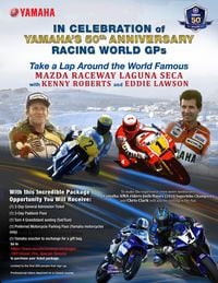 Cypress, California May 24, 2011.....Yamaha is pleased to announce that Former World Champions Kenny Roberts and Eddie Lawson will participate in a very special fan lap promotion during a scheduled break in practice and qualifying for the Red Bull U.S. Grand Prix on Friday, July 22.