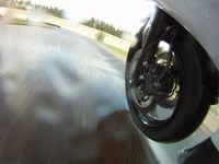 The image above has not been modified in photoshop! Daytona has nothing on the Contidrom. Continental's Jeverson, Germany testing center has a 3 Kilometer oval with mind-bendingly steep 58-degree banked turns. Motorcyclist is in Germany to test Continental's new Street Attack 2 tires, which you'll be able to read about in a future issue. For now you should know that Conti has an incredible testing facility with some seriously demanding terrain. In addition to the banked oval (used for high-speed and load testing) the facility features a wet handling course and dry winding road course, all of which will be sampled during our two-day stay at the Contidrom.