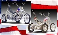 It was bad enough when Harley-Davidson introduced its Tri Glide Ultra Classic trike, a version of its venerable FL touring bike with a pair of automotive-sized, 15-inch outriggers at the back—making it perfect for ferrying overfed American motorcyclists from all-you-can-eat buffet to all-you-can-eat buffet. Of course it sold out. Now we're confronted with this utter abomination, a tipover-proof version of the iconic Captain America chopper from the film Easy Rider.