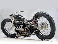 Dave Cook might hail from Milwaukee, but there's not a single Motor Company component on his Rambler. The motor is a mid-'70s Honda CB550 inline-four mounted crossways in a hand-built, rigid frame. The transmission is from a BMW R25, mated to the shaft-drive assembly from a Yamaha Virago. Virtually everything else has been fabricated by Cook, including the hubs and perimeter brake rotors, and the bike is finished with plenty of nickel and brass plating and even laminated hardwood on the controls.