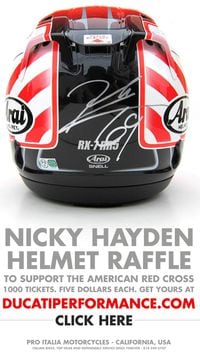 We're raffling off a gen-u-ine, Nicky Hayden autographed, Arai helmet to benefit the American Red Cross and their efforts in the Southern US. 1000 raffle tickets. $5 each. Get yours now at ducatiperformance.com.