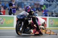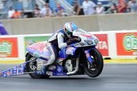 Smith, piloting the new Victory Motorcycles Gunner entry, was looking to win his first race since the 2013 fall event in Las Vegas. He advanced to the final round after number one qualifier Chip Ellis (Piranaz Buell)n was a no-show on the starting line for the semi-final. In the final, despite getting the Gunner to a head start on the starting line against Arana’s Buell, Smith was unable to claim the win when Arana powered by him on the top end. Despite the loss, it was a positive points day for Smith, who moves into the top 10 in the PSM standings at No. 8 with four Pro Stock Motorcycle events remaining before the Countdown to the Championship.
