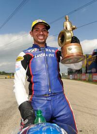 In Pro Stock Motorcycle action at the NHRA Lucas Oil Nationals, Hector Arana Jr. defended his Chicago win from last season with a 6.918 at 194.66 on his Lucas Oil Buell, defeating two-time world champ Matt Smith (6.957 at 190.24) in the final. (CLICK HERE for more on Matt Smith and the Victory Racing Gunner) The win was Arana's 10th career victory, first of the season and second at Route 66 Raceway. He defeated LE Tonglet, Jerry Savoie, and Chaz Kennedy before taking Smith out in the final. Arana sits second in points.
