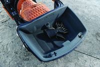 The ergonomics have been completely revised for comfort, starting with a wider, taller, and softer “pillow top” saddle that better cradles your bum and increases leg room too. A new, 4-inch-adjustable windscreen is lower but wider than the Chieftain’s to create an overall larger pocket of still air, but it’s still too tall for this 5-foot-7 pilot to see over in its lowest position. The passenger enjoys a full-length padded backrest and floorboards that adjust 2 inches vertically and offer 12 degrees of angle adjustment to accommodate boots. Cockpit comfort is further improved by clever lower fairings with four adjustable air deflectors that very effectively control airflow—and weather protection, too, as we discovered during our wet, two-day ride around Red Wing, Minnesota.