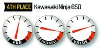 ReviewsComparison: Honda CBR650F vs. Kawasaki Ninja 650 vs. Suzuki SFV650 vs. Yamaha FZ-07Real Cheap Fun - An all-Japan budget showdownBy Zack CourtsDecember 8, 2014