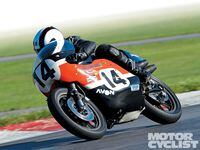 I've heard the XRTT described as "a classic American hot-rod-too much motor, not enough chassis." That description seems spot-on. The bike is surprisingly fast. Mid-Ohio is not Daytona-where Rayborn was once timed at 168 mph-but there's room to reach 135 mph and the XRTT gets there in a hurry. The power profile is surprisingly similar to a modern, air-cooled, 1200cc Buell. The chassis is something entirely different. Long, low and slow to turn, it's a like driving a truck through Mid-Ohio's many off-camber and double-apex turns. The restricted riding position makes it impossible to move or hang off, and I'm surprised to feel my boot sole dragging through the Keyhole, my modern Alpinestars too stiff to let me rock up on my toes. Riding Rayborn's bike not only requires a different mindset, but a different wardrobe, too.