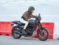 Although the SOHC air/oil-cooled two-valve 349cc single-cylinder is identical from Meteor to Classic to Hunter, the Hunter has been given a new throttle map to sharpen engine response at the initial opening. Fueling feels slightly more aggressive off the line, but overall character is very similar to the other Royal Enfield 350 engines. The nonadjustable 41mm fork was developed just for the Hunter and is firmer than the Classic and Meteor; the stiffer suspension is well tuned for urban square-edged bumps, potholes, or joints in the pavement, with the imperfections being felt, but not to the point of being shocking or painful. Feel and feedback from the ByBre two-piston caliper and 300mm disc up front is surprisingly good considering the budget-minded components. Rear brake performance was just as impressive, though the brakes need big inputs to get a strong reaction.