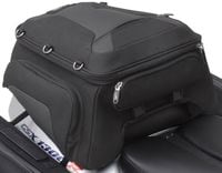 Designed for every type of riding and every style of bike, our tunnel bags will fit everything from sport bikes to cruisers and everything in between. The aerodynamic shape and rider-convenient features make stashing your gear easy and does it with leading edge style. The tunnel bag attaches to almost any rear seat or pillion up to 9-inches wide with an included mounting system, and additional straps for extra security. Once secured to the rear seat area, the bag can be removed and re-attached to the bike within seconds using a series of cam locks on the outside of the bag.